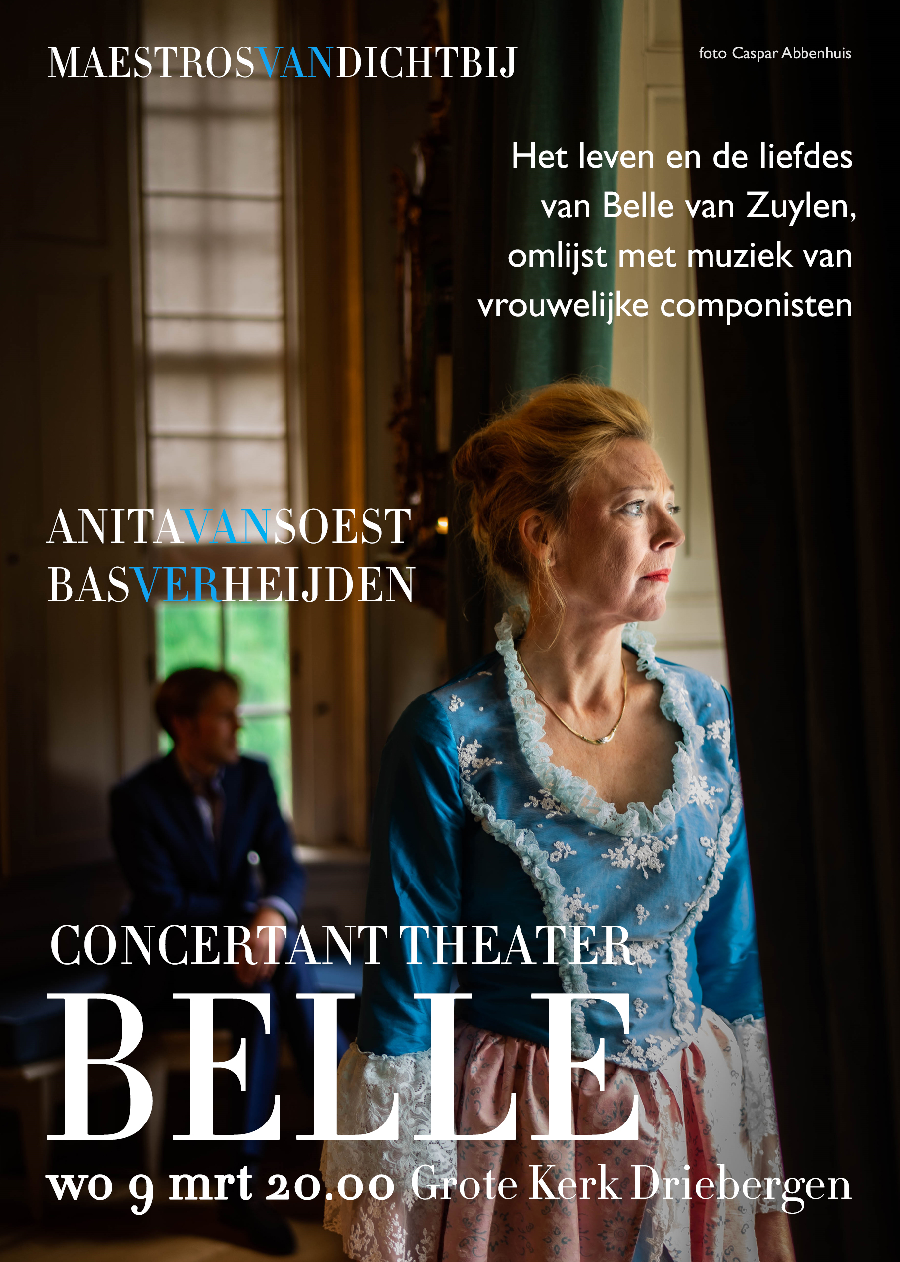 DEZE VOORSTELLING IS OOK TE BOEKEN VOOR THEATERS: MET EEN SPECIAAL ONTWORPEN KAMERSCHERM, ATTRIBUTEN EN DE SPECIALE BELLE-JURK VAN ANITA ROEPEN WE DE SFEER VAN SLOT ZUYLEN OP. OOK KUNNEN WE FOTO’S PROJECTEREN VAN HET INTERIEUR VAN SLOT ZUYLEN EN PORTRETTEN VAN BELLE EN ALLE COMPONISTEN. DE MUZIEK EN HET SPEL DOEN DE REST….