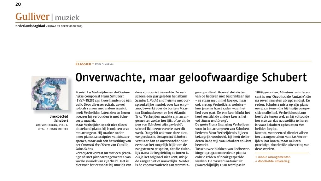 ‘Verheijden toont zich in dit programma als een schubertiaan-in-hart-en-nieren, wiens verbeeldingskracht in deze twintig stukken muzikaal boekdelen spreekt.’
