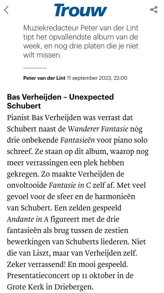 ‘Zeker verrassend! En mooi gespeeld – met veel gevoel voor de sfeer en harmonieën van Schubert’